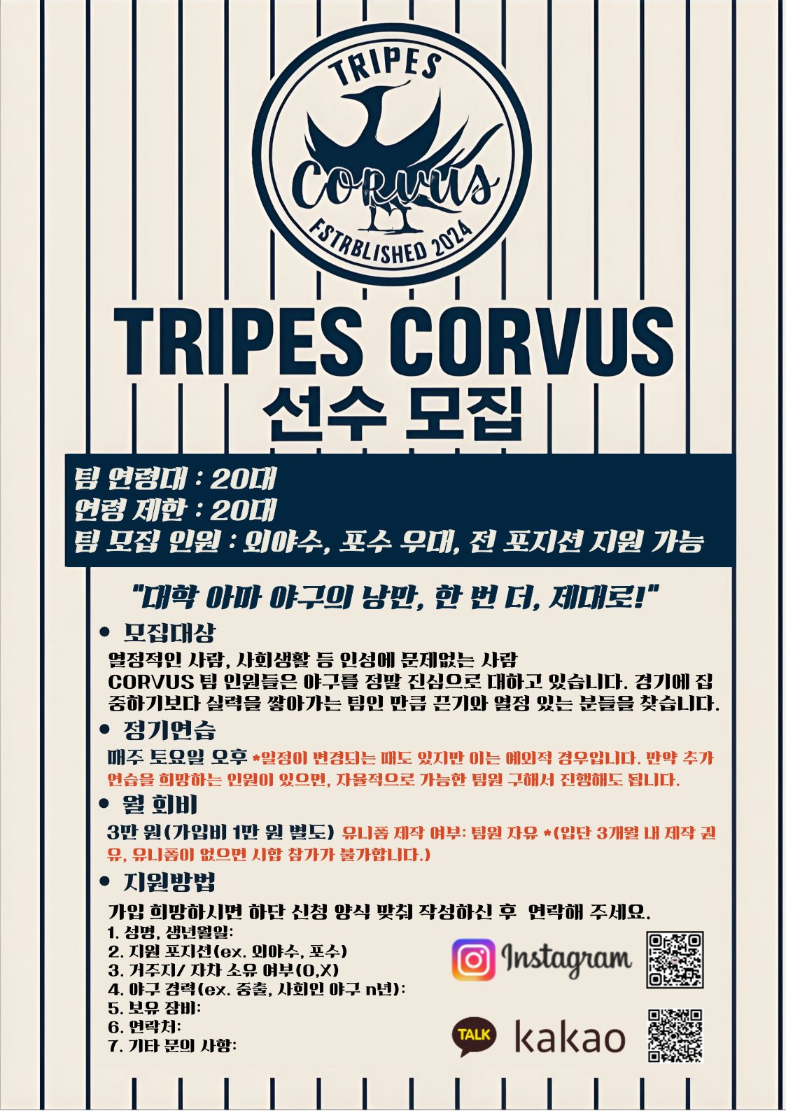 [모집 대상]: 야구에 대한 열정적인 사람, 사회생활 등 인성에 문제없는 사람