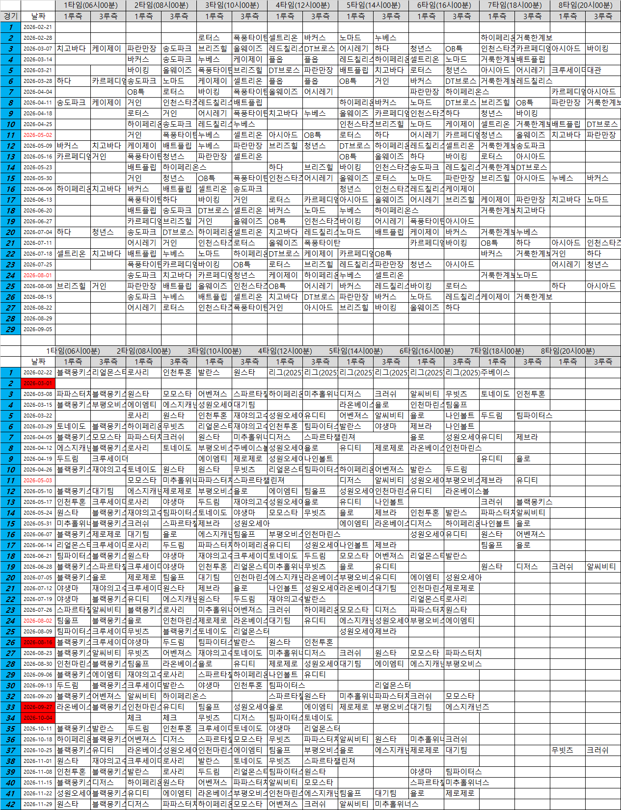 2026 주말 리그 일정 첨부